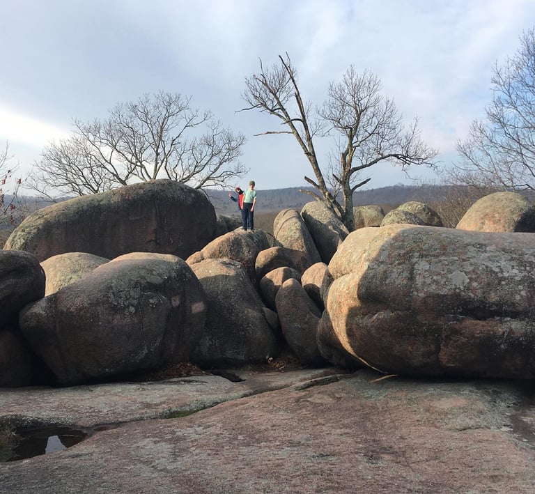 Elephant Rocks State Park showcases giant pink granite boulders that rest end to end like a parade of elephants — and it’s home to Missouri’s first Braille Trail, a paved loop designed for visitors of all abilities with tactile and interpretive stations. The rock formations are part of ancient Precambrian geology and have drawn visitors for generations for easy climbing, picnicking, and family exploration. (4.5 miles from park)